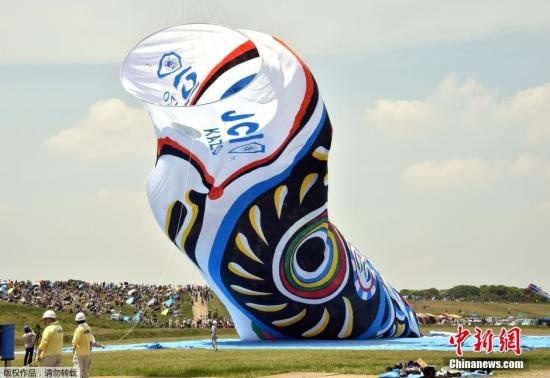 中新網5月4日電  據日媒4日報道,日本琦玉縣加須市因盛產鯉魚旗而出名。加須市舉辦升起長達100米的巨大鯉魚旗活動。